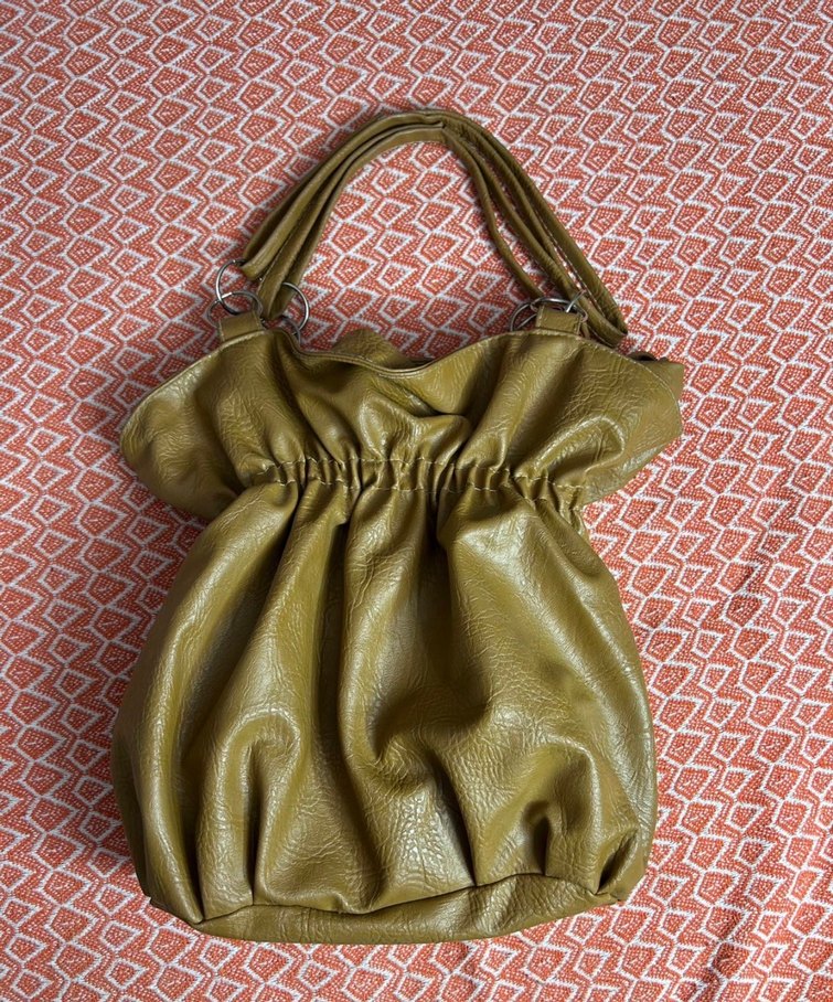 Parlak hardal deri, bohem tarz ve fermuarlı kapanışa sahip kadın çantası, günlük kullanım için uygundur.