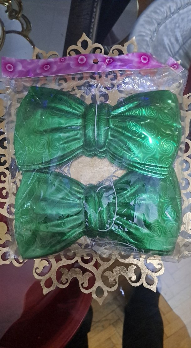 İki adet parlak yeşil, dalgalı desenli erkek papyonu, klasik şekle sahip ve paketlenmiş olarak sunuluyor. ışıklı ürün , pakette 4 adet vardır
