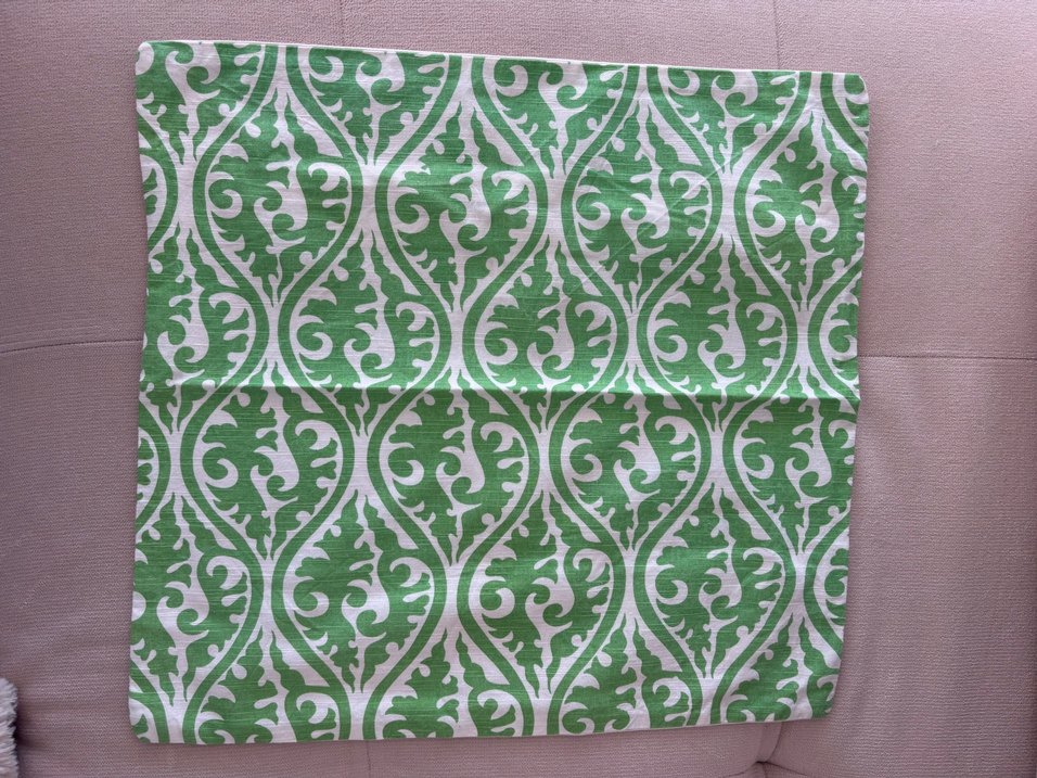 Parlak yeşil renkte, geleneksel desenli baskıya sahip kırlent kılıfı