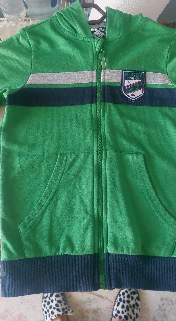 Parlak yeşil renkte, fermuarlı ve bisiklet yaka uzun kollu erkek çocuk sweatshirtü. Yumuşak fleece kumaş ve rugby detaylı, sokak stilinde rahat bir model.