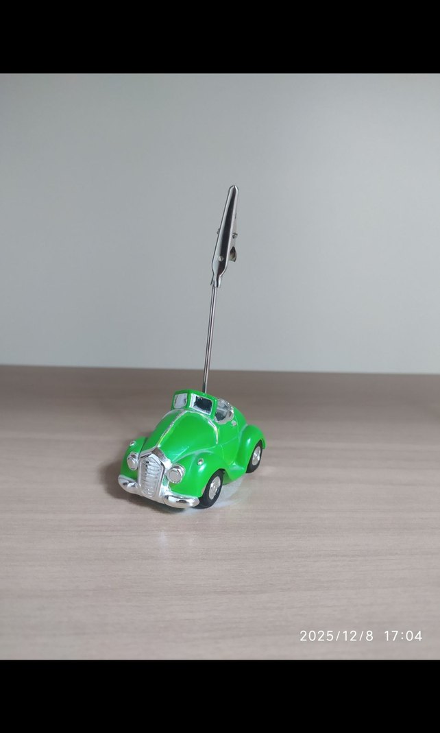 Metal klips tutuculu parlak yeşil araba.Bu retro ve neşeli notluk ile masanıza tarz katın! Klasik model esintili, parlak yeşil araba figürü ve timsah klipsli metal tutucu. Fotoğraf, not, kartvizit, fiyat etiketi veya küçük hatırlatıcıları tutmak için idealdir. Ofis masası, çalışma odası veya vitrinler için harika bir retro/vintage dekorasyon objesidir. Sıfır, metal klips sapasağlam