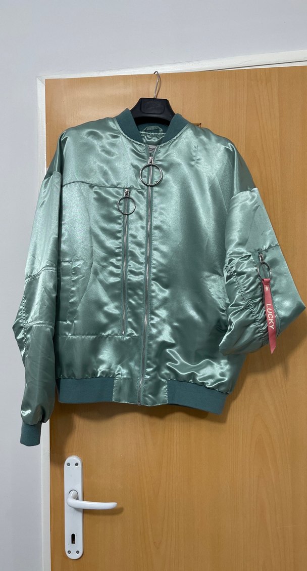 Parlak yeşil renkte, uzun kollu, yuvarlak yakalı, fermuarlı ve bol kesim street wear ceket. Günlük kullanıma uygun şık parça.