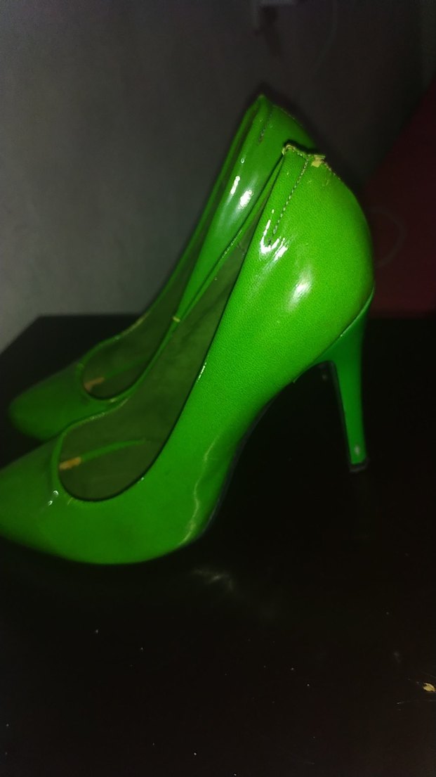 Parlak yeşil renkte, yüksek topuklu kadın stiletto ayakkabılar, minimalist ve çağdaş tasarıma sahiptir. Romantik akşamlar için uygundur.