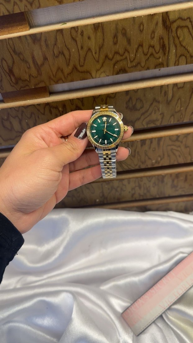 Parlak yeşil kadranlı, kemerli iki tonlu metal kayışa sahip, klasik zarafeti modern klasik tarzla buluşturan kadın kol saati. ⌚
