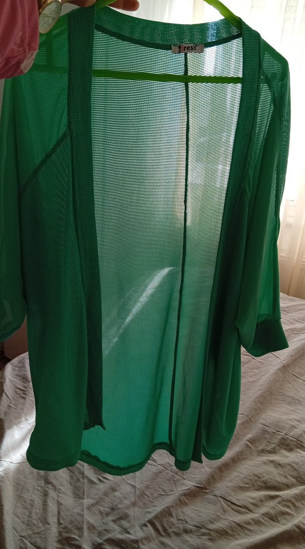 Parlak yeşil, uzun kollu ve bol kesim midi uzunluğunda kadın Minimalist bohem tarzını yansıtır. s m l. standart