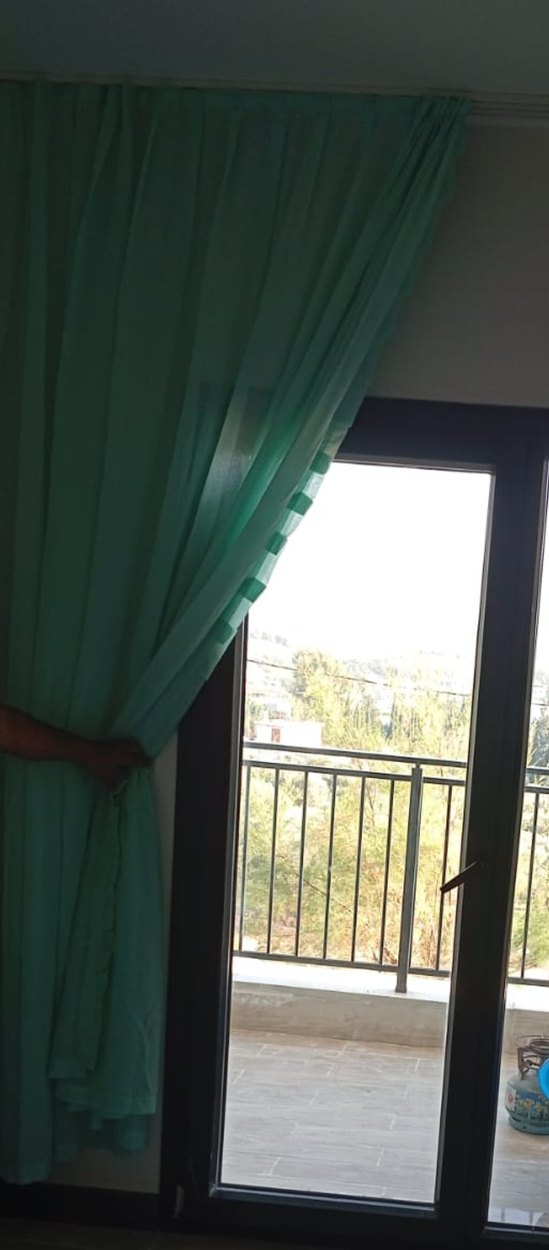 Parlak yeşil renkte, desen içermeyen modern perde, mekana ferah bir dokunuş katıyor. görsel için serdim fon perde heeyerde kullanılır çiftide duruyor