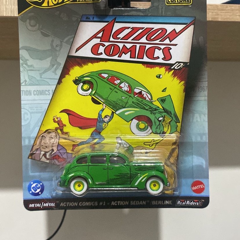 Parlak yeşil renkte, Action Comics serisinden detaylı bir oyuncak araba. Canlı renkler ve gerçekçi metal yapıya sahip.