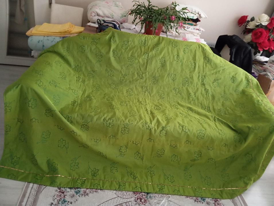Parlak yeşil renkli yatak örtüsü sfır ürün büyük boy