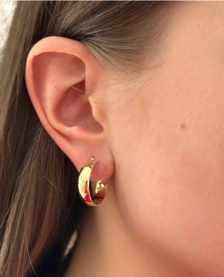 Parlak yılan desenli altın mini halka küpeler, cesur ve minimalist bir görünüm sunar. Romantik akşamlar için kısa ve zahmetsiz şıklık sağlar.✨