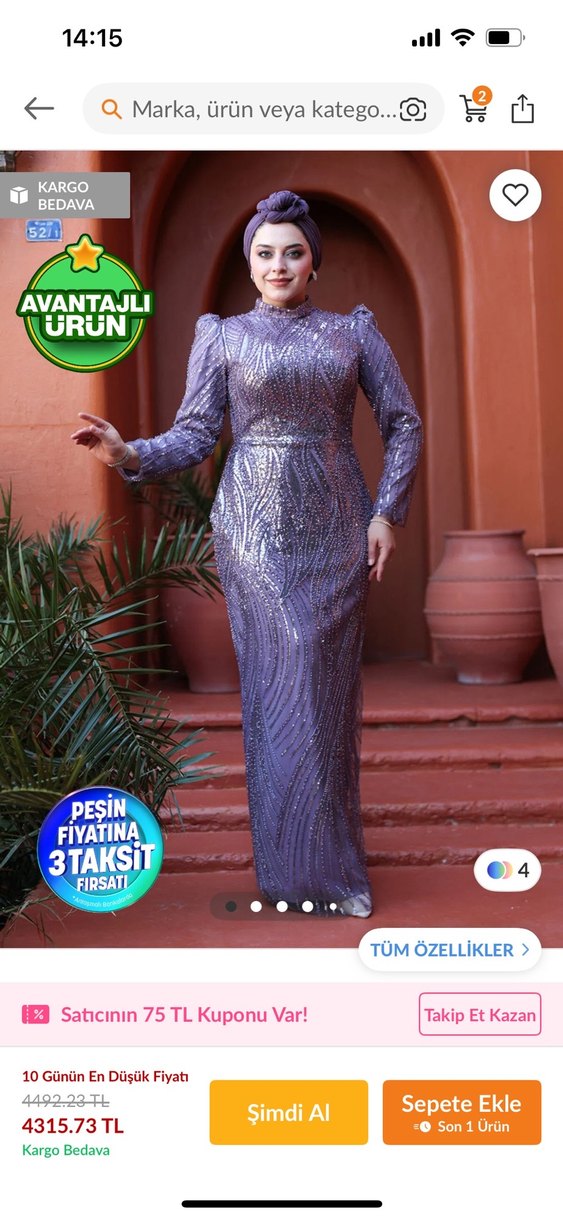 Parlak mor yılan desenli, drapeli, uzun kollu ve yüksek yakalı, zarif ve modest kesim abiye elbise. Düğünler için uygundur. Ufaktan simleri dökülmüş renginden dolayı belli edilmiyor