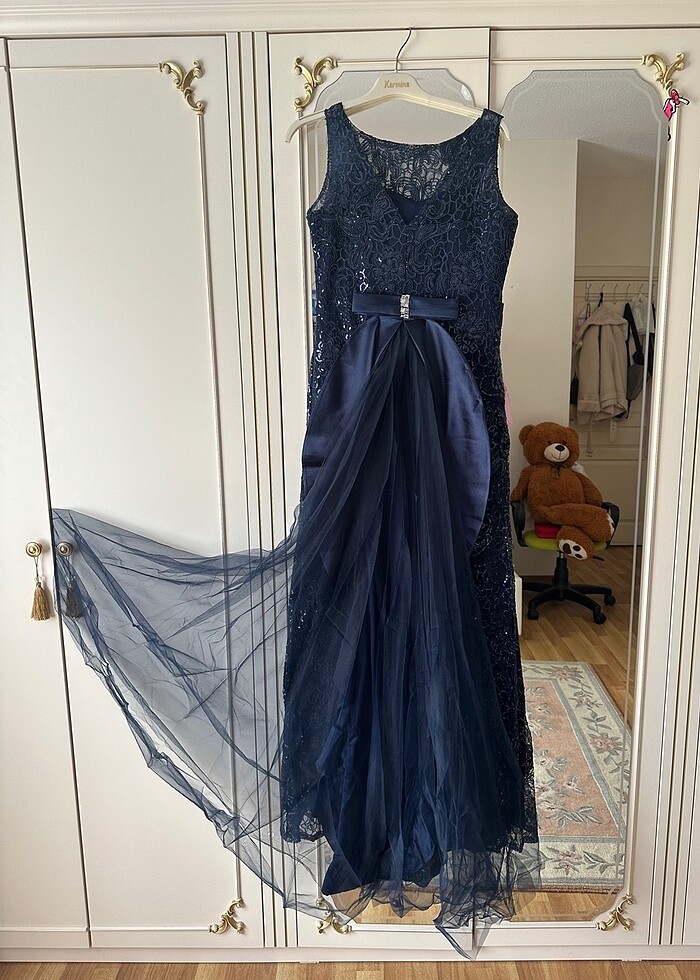 2 saatliğine tepsi tutmak için giyildi o kadar. Üzeri pullu ve satenimsi bir kumaş, arkası tül. Şirin bir fiyonk detayı da var. Tam kalıp üzerinde oynama yoktur. İsteyene videosunu da iletebilirim. pazarlık yapılabilir. Kendi kılıfı ile göndereceğim .