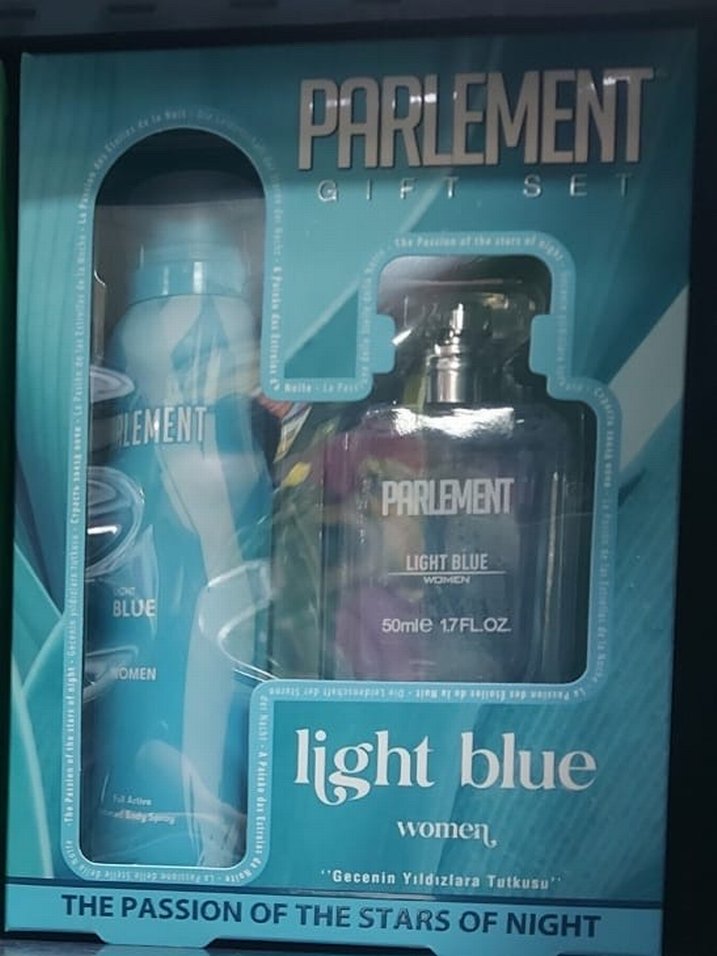 Parlement Light Blue kadın parfüm seti, 50 ml şişede sunulmaktadır. Koku, gecenin yıldızlarına olan tutkudan ilham almıştır.