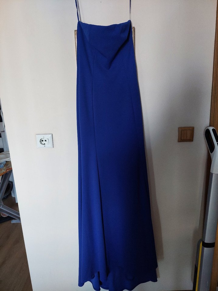 Parlement mavisi drapeli, uzun ve kolsuz abiye elbise. Tekstil, klasik ve minimal tasarım ile düğün için uygun.bel 33 gögüs 45 ön boy142 arka kuyruklu boy 162