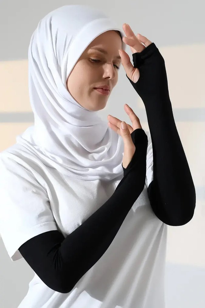 Kadınlar için uzun kollu, akıcı sentetik kumaştan drapeli kol kılıfı, mütevazı athleisure sokak stili için uygundur.