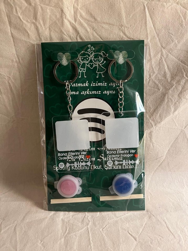 sevgiliye ve arkadaşa hediyelik parmak izli anahtarlık seti