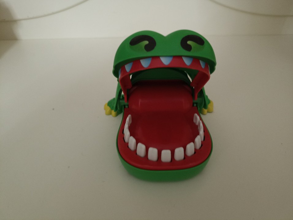 Ürün sıfır gibidir.Tertemizdir.Ailece oynanabilecek çok eğlenceli bir oyuncak.Timsahın dişlerine oynayan her bir kişi bir kez bastırıyor kimin parmağını kaparsa o kişi kaybediyor.Çok keyif alabileceğiniz bir oyun.