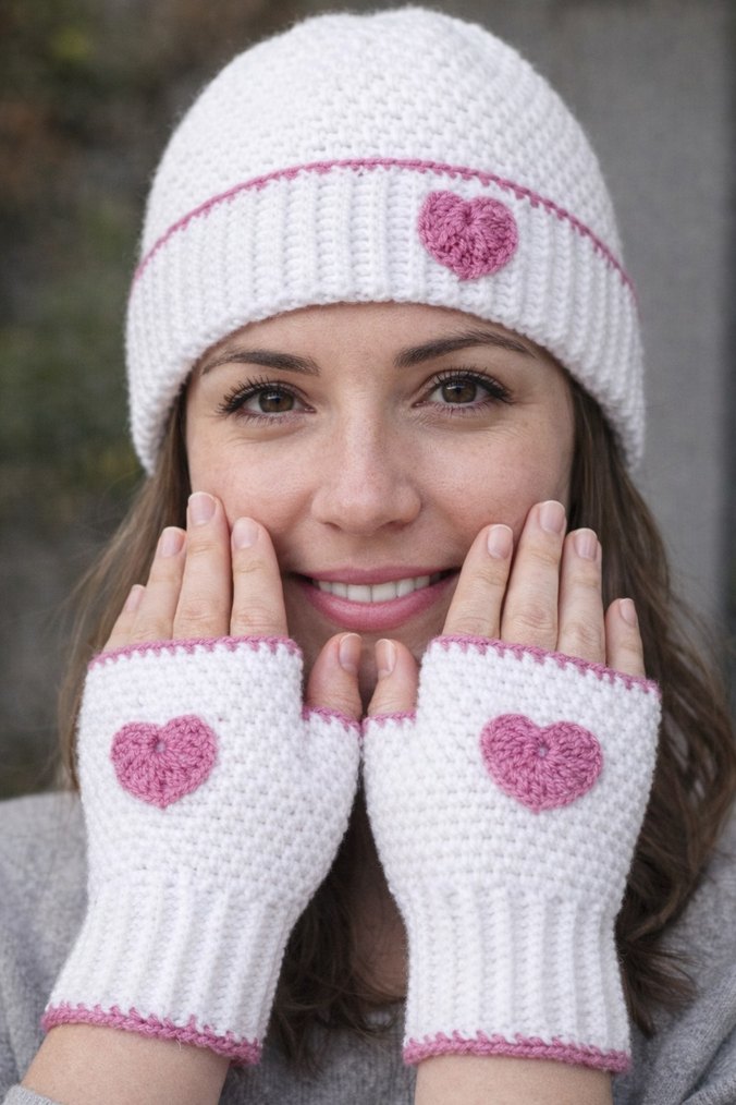 Parmaksız eldiven ve bere (el örgüsü)
