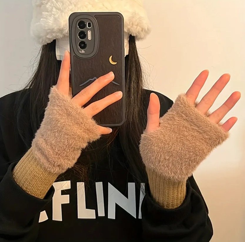 Parmaksız Peluş Kadın Eldiveni