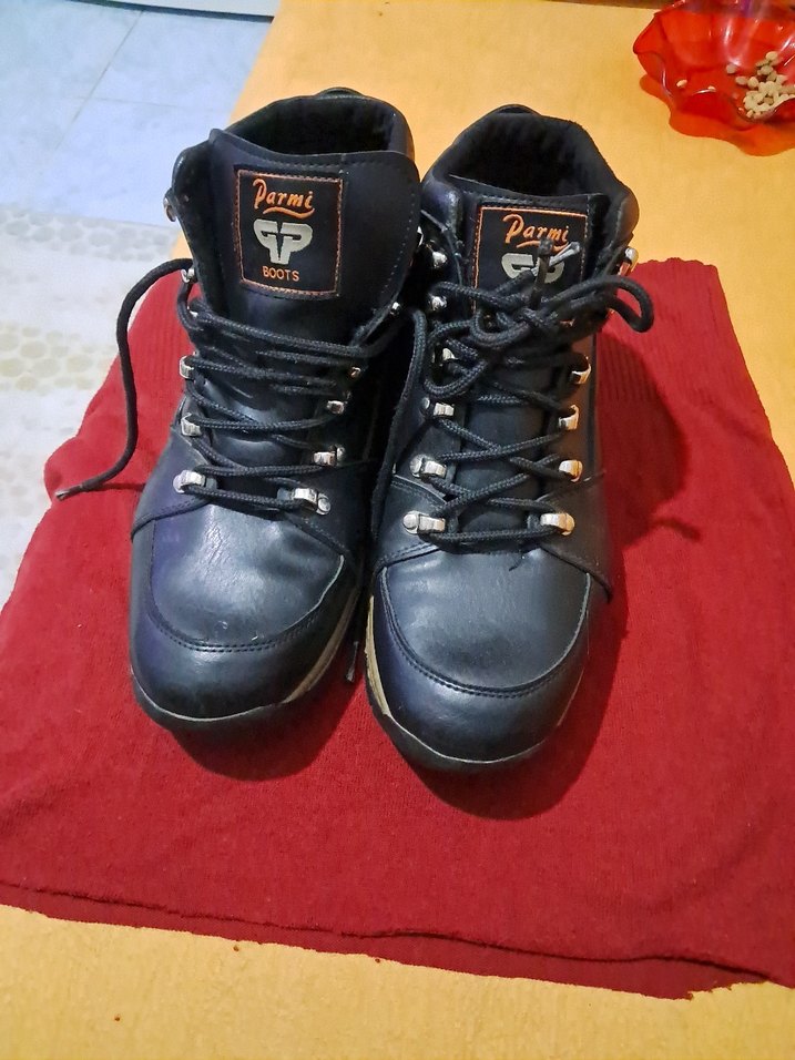 Parmi markalı siyah erkek sokak stili bot, kauçuk malzeme ve tokalı tasarıma sahiptir, günlük kullanım için uygundur.