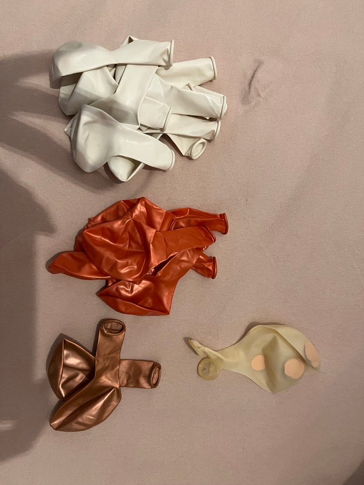 Parti balonları. 10 tane beyaz, 7 tane metalik, 2 tane farklı renkte metalik, 2 tane de içinde pul olan balon bulunmaktadır. Toplamda 21 tane balondur. Rose gold renk olarak almıştım. Balonların şişinceki hallerini görmek için son görsele bakabilirsiniz. #parti #süsleme #balon #metalikbalon