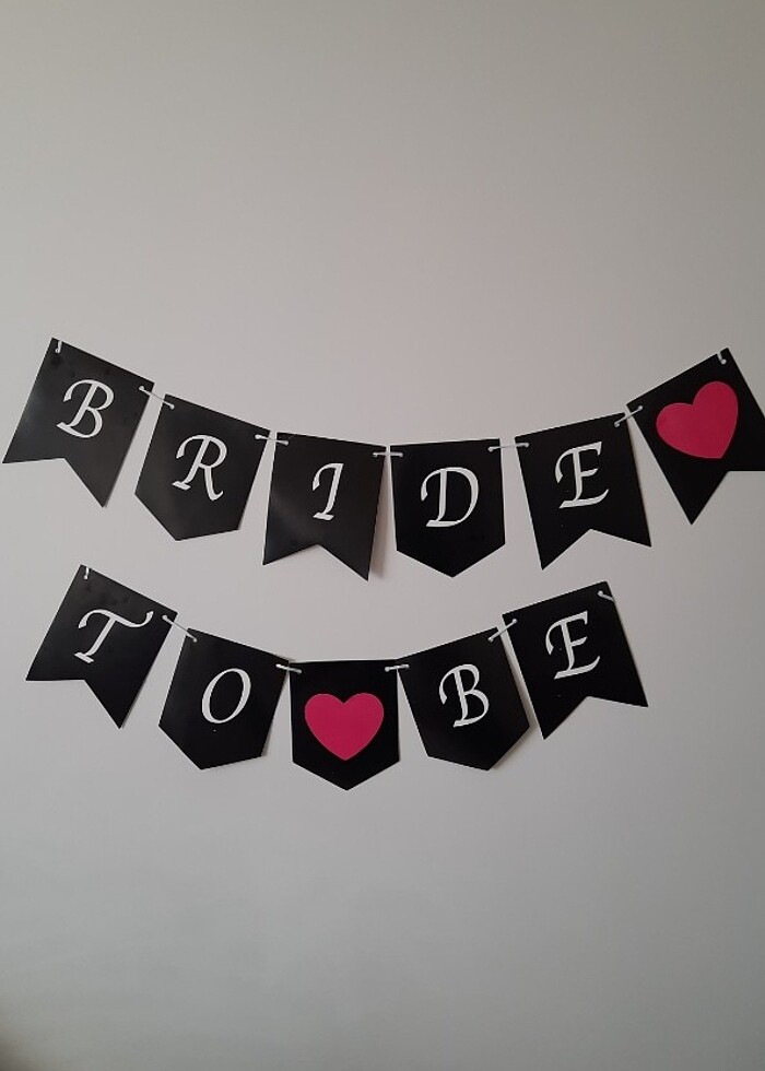 Bride To Be yazısı. Ürünün kağıdı kaliteli, kalındır. İçerisinde bulunan kurdele ip sayesinde duvara istediğiniz gibi tasarlayıp asabilirsiniz. Her bir harf: En: 15 cm Boy: 18 cm Toplam uzunluk: 1 metre 60 cm.
