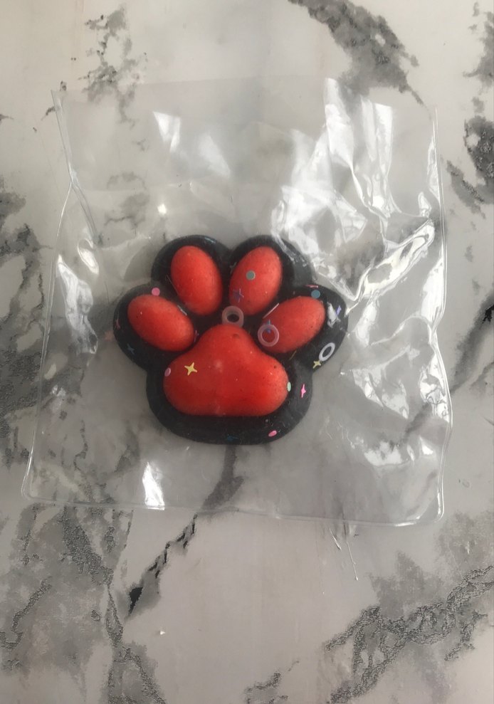Küçük dekoratif detaylara sahip, yumuşak malzemeden yapılmış turuncu bir mojmoj sugushiy