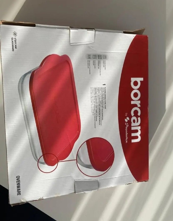 Koyu kırmızı kapaklı, dikdörtgen cam fırın kabı. Ürün sıfırdır. 3200 cc büyük boy borcamdır. Hediye olarak geldi, ihtiyaç fazlalığı sebebiyle satılık