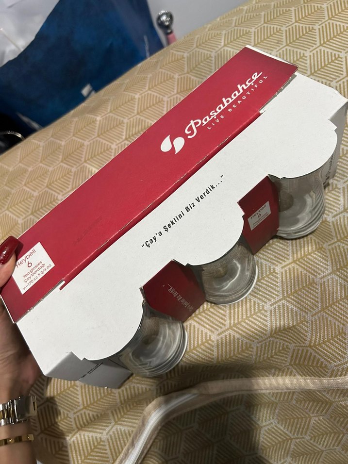 Pasabahce markasına ait, sade ve şık tasarıma sahip 6'lı cam çay bardağı seti. Kırmızı beyaz kutusunda, çay servisi için uygun. ☕