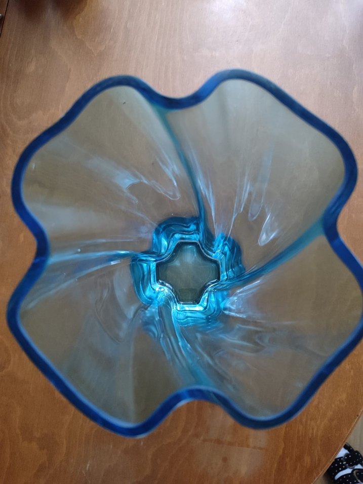 Koyu turkuaz renkte, dalgalı tasarımlı ve pürüzsüz yüzeye sahip dekoratif cam vazo. Her ortama şıklık katar. defosu yoktur geri iadesi yoktur.
