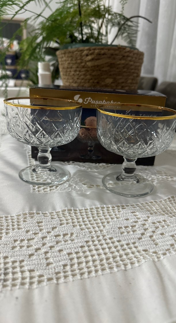 Parlak altın kenarlı, şık kesim desenli iki adet dondurma kase. Paşabahçe 440211 Timeless Golden Touch Ayaklı Dondurmalık 2'li 2 Adet Dondurmalık içermektedir. Hacim: 250 cc, Yükseklik: 120,5 mm, Çap: 98 mm. 6 adet mevcut