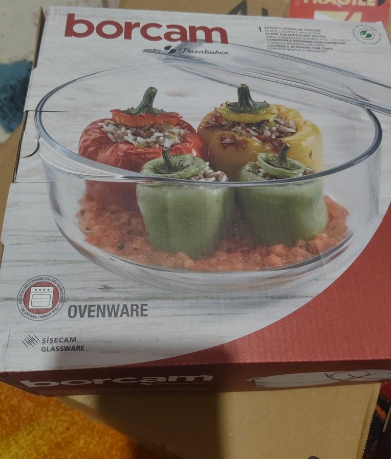 Şişecam Borcam cam fırın kabı, fırın kullanımına uygun, dayanıklı ve şeffaf yapıda. Pişirme ve servis için idealdir.