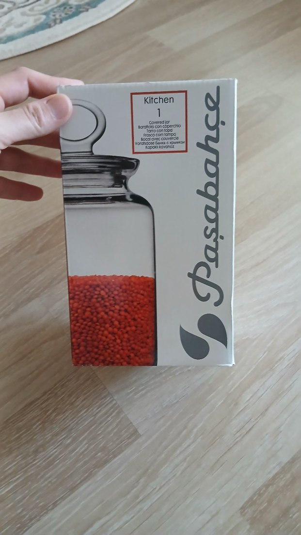 Pasabahce mutfak saklama kabı, kapaklı, şeffaf cam gövde ve gri kapaklıdır. Kuru gıdalar için uygundur.