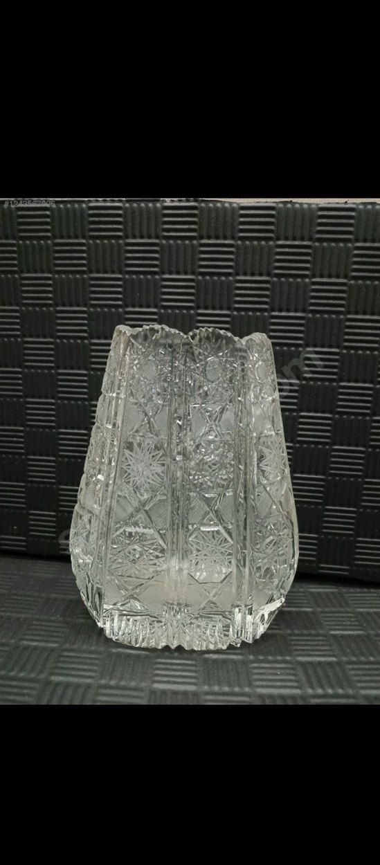 Temiz, iyi durumda.Cam yüzeyine işlenmiş detaylı desenlere sahip dekoratif bir vazo.