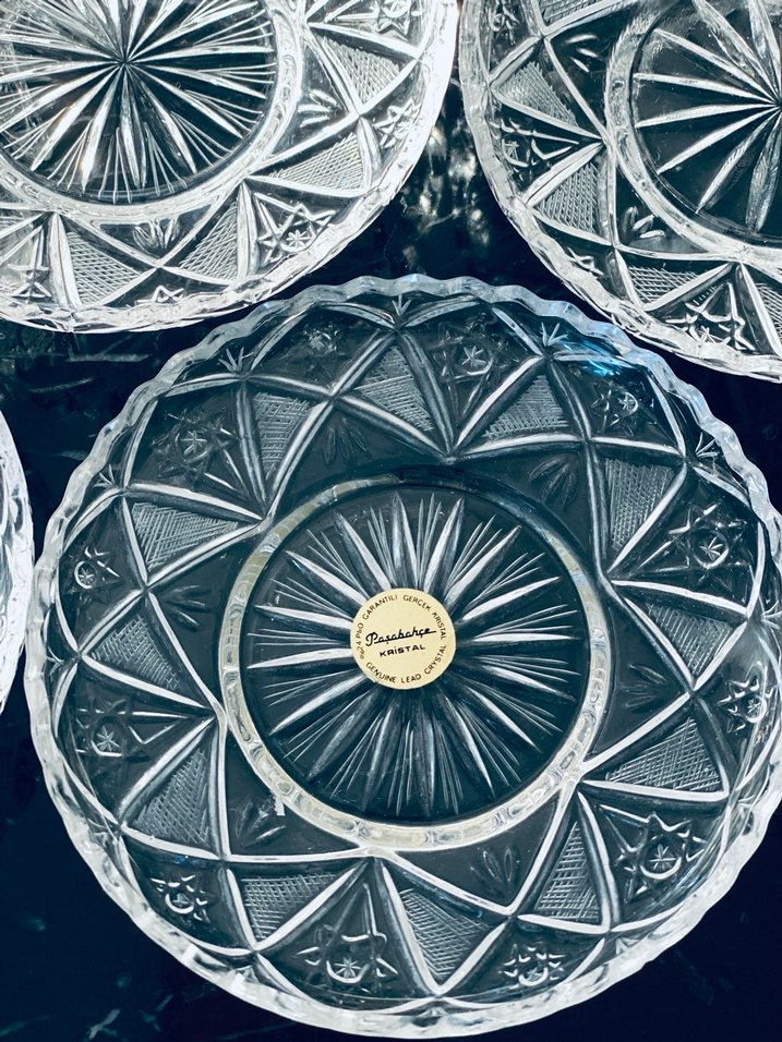 İnce işçilikle desenlendirilmiş 6 adet kristal çay tabak seti. Sofranıza farklı bir hava katmak için ideal. İADE YOKTUR. #paşabahçe #çaytabağı #kristal #şıksofra