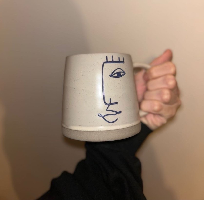Minimalist soyut yüz çizimiyle beyaz seramik kupa, rahat tutma sapına sahip. Günlük içecekler için uygun ☕. Ikili set olaraktir kendi kutusuyla gonderim yapacagim yepyeni urunler