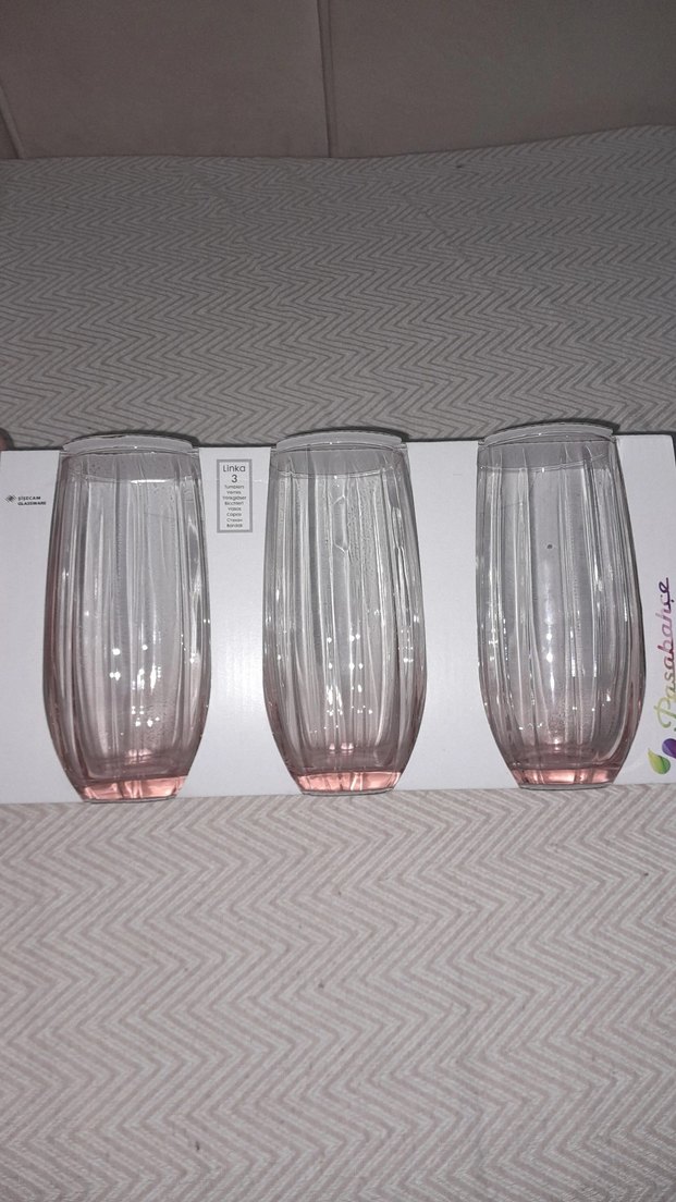 Paşabahçe Su Bardağı 3lü Linka pembe 500cc 3'lü Uzun Bardak Seti stok var