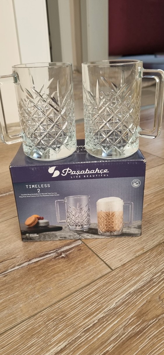 Pasabahçe Timeless serisi, klasik kesim desenli iki adet şeffaf cam kupadan oluşur. Her kupa sağlam kulpludur ve sıcak içecekler için uygundur. ☕