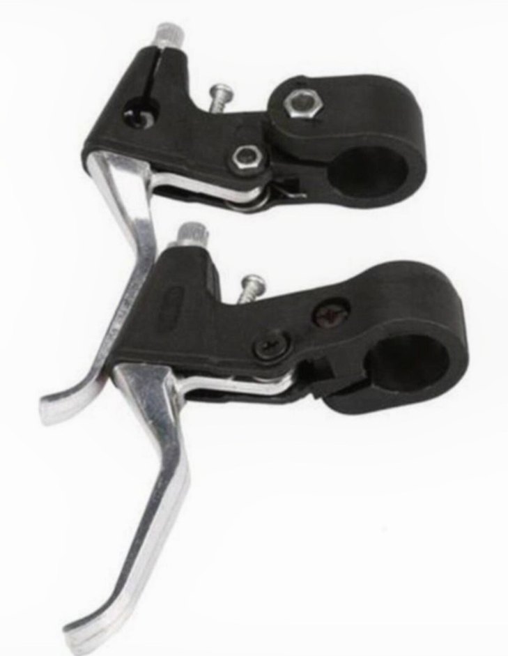 Siyah ve gri renklerde, dayanıklı malzemeden üretilmiş için fren kolları seti. Sıfır üründür