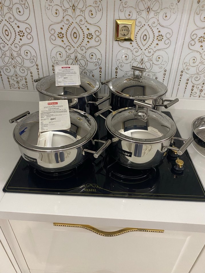 Paslanmaz Çelik 4'lü Tencere 1 tava toplam 9 parça set