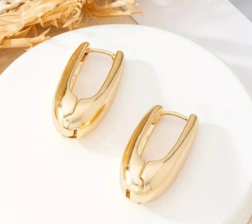 Paslanmaz Çelik Parlak altın renkli, tokalı tasarıma sahip minimal ve çağdaş küpe. Romantik akşamlar için midi uzunlukta klasik şıklık sunar.