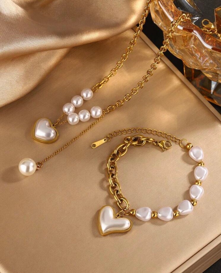 Paslanmaz Çelik kalp şeklinde bileklik kolye seti