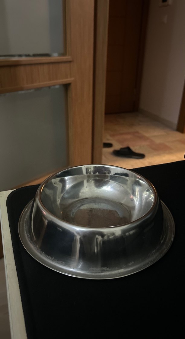 Paslanmaz çelikten yapılmış, dayanıklı ve sade tasarımlı köpek mama kabı.