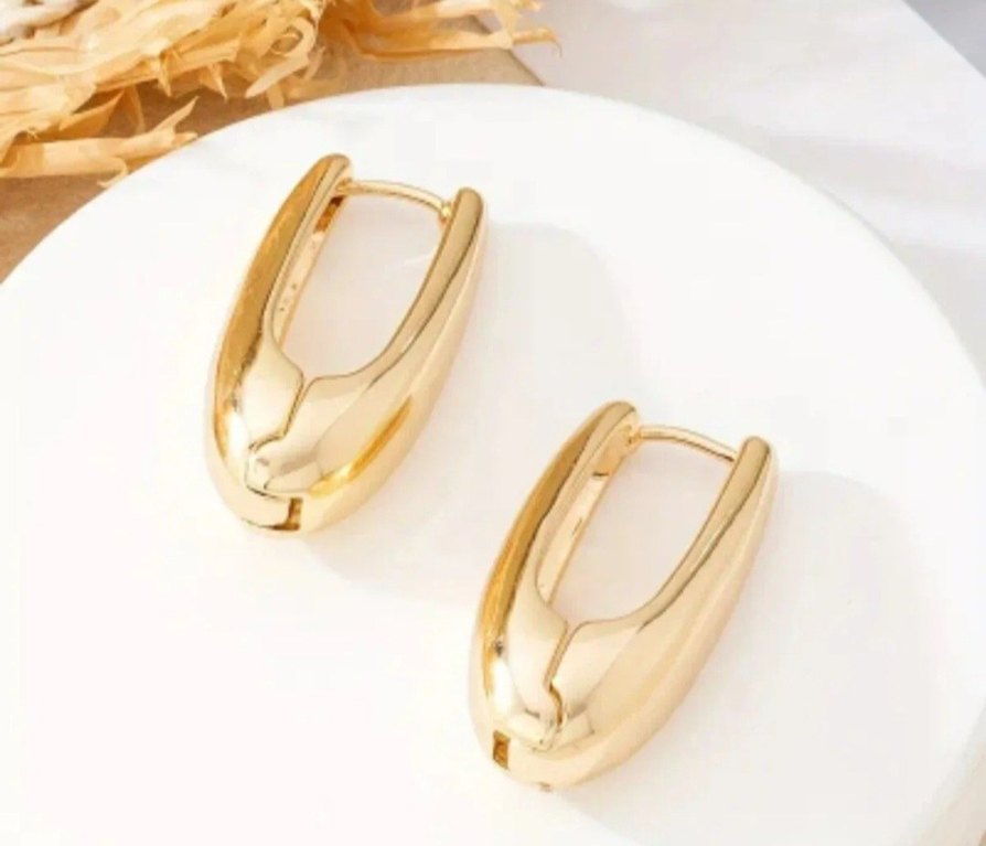 Paslanmaz Çelik parlak altın renkte, tokalı ve minimal tasarımlı midi küpeler. Romantik akşamlar için klasik ve çağdaş bir şıklık sunar.