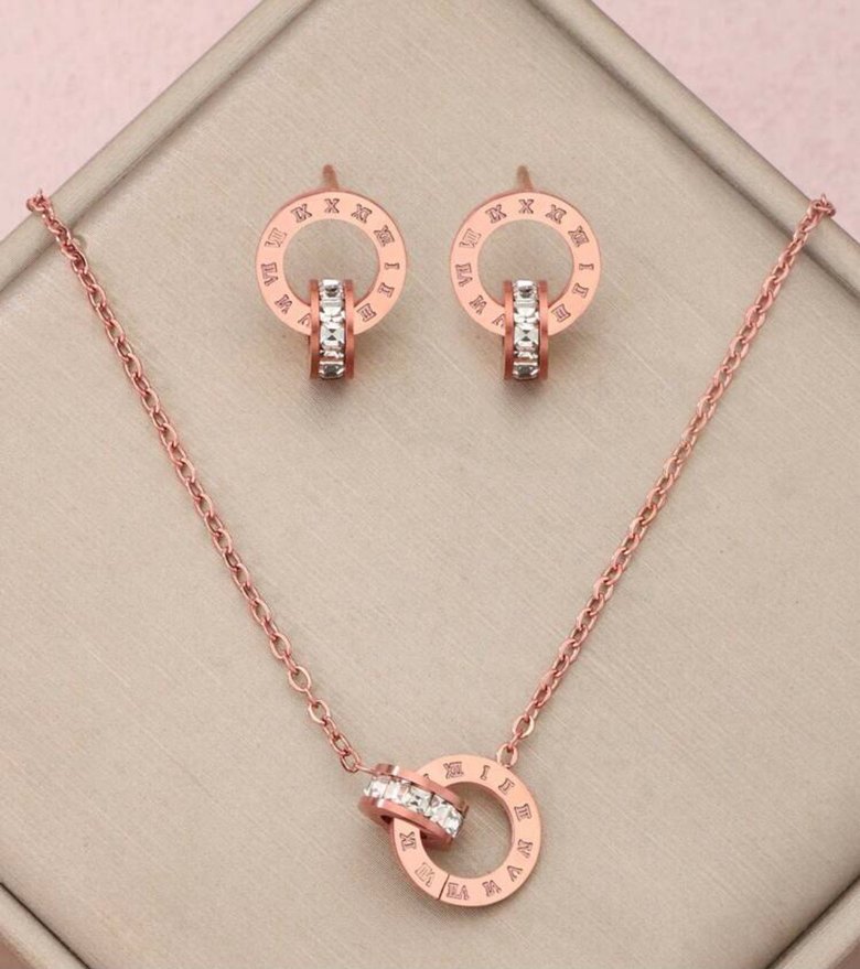 Paslanmaz çelik Roma rakam tasarım küpe kolye seti