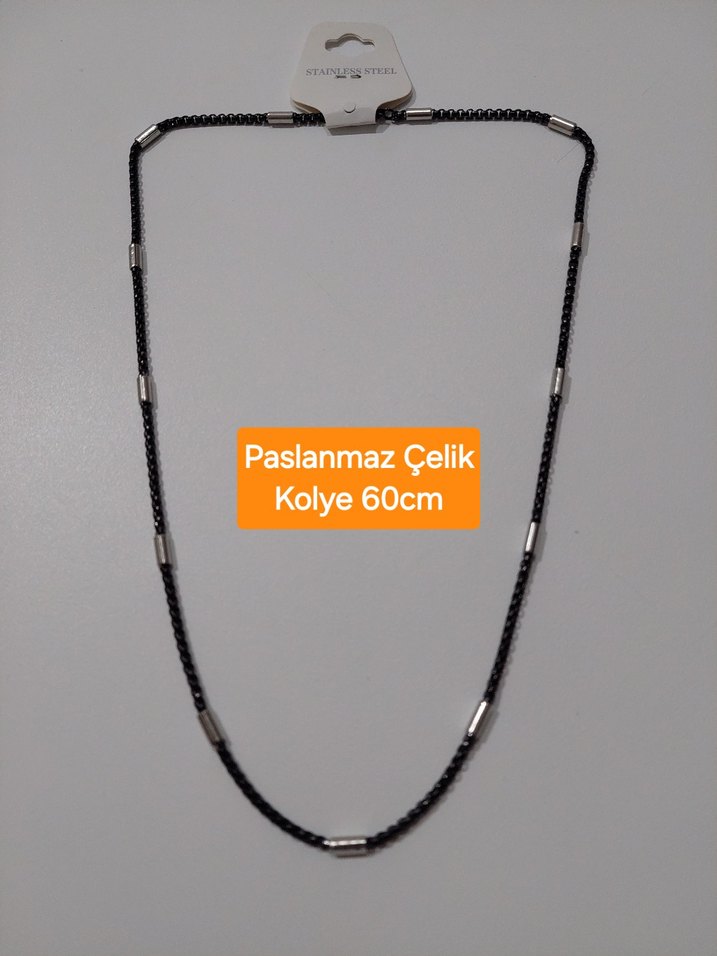 60cm uzunluğunda, minimalist goth tarzında siyah paslanmaz çelik erkek kolye. Şık ve trend bir tasarıma sahiptir.
