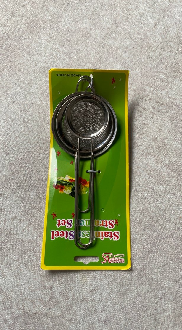 Renkli paslanmaz çelik süzgeç seti, ince tel örgülü yapısıyla mutfakta kullanıma uygundur. Kolay saklama için iç içe geçebilir.