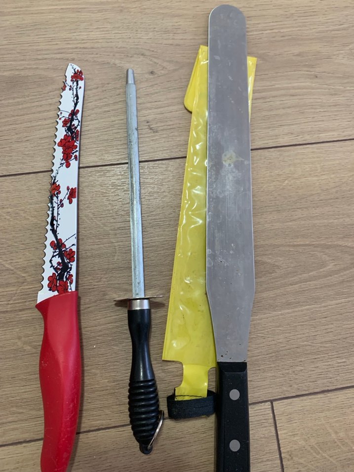 Pasta kek ve kremayı düzeltmek için kullanılır. Sağlamdır çelik ve sağlam plastik sapı mevcut.  yanında da seramik kaplı desenli ekmek bıçağı ve bıçak Bileyicisi, Törpü hediyeleri hepsi çok iyi durumda