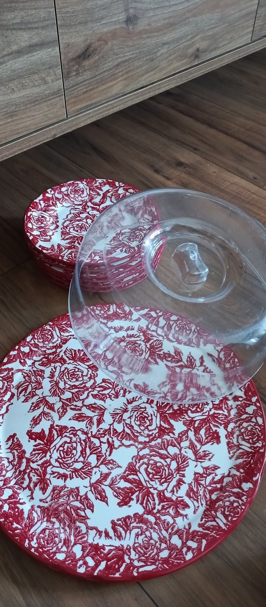 kek fanusu , büyük servis tabağı ve 6 adet pasta tabağı