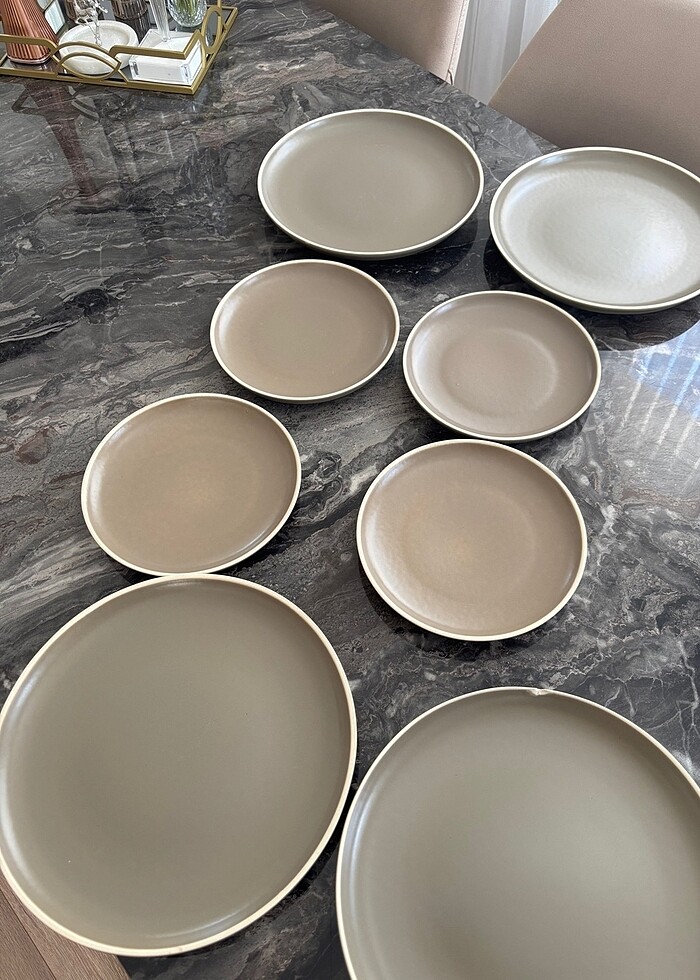 4 adet pasta 4 adet yemek tabağı. 1 tanesinde çok ufak defo mevcut. Bundan dolayı uyguna bırakıyorum