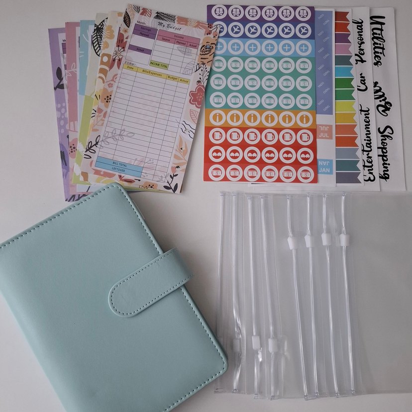 Pastel renkli kapak, renkli çıkartmalar ve çeşitli planlama sayfaları içeren planlayıcı seti. ️ 1 adet bütçe bağlayıcı 12 adet not sayfaları 8 adet şeffaf kilitli cüzdan 2 adet yazı sticker 3 adet büyük boy planlayıcı not stickerları